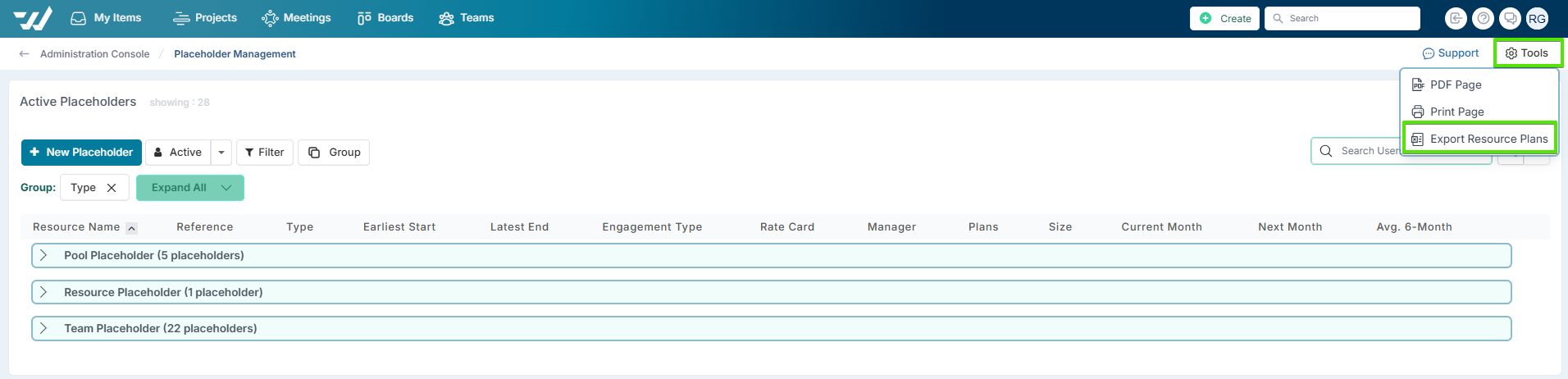 This article focuses on managing and setting resource or pool placeholders, however please refer to the Allocating resource placeholders to projects article to learn more about allocating placeholders to projects.