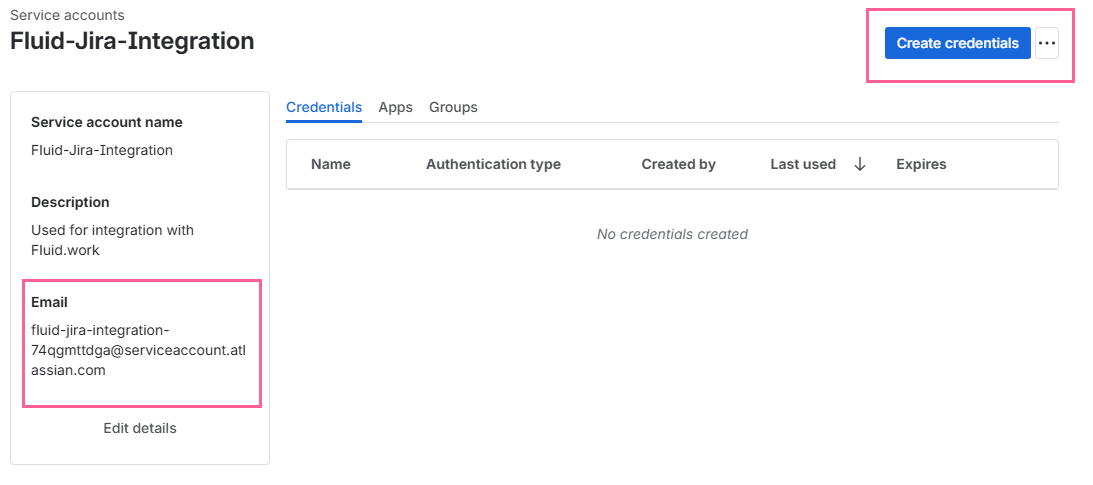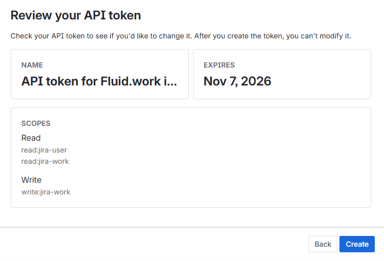For the optional description, enter the name of an app that uses the account. eg. Fluid-Jira-Integration