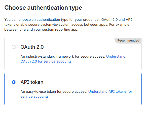 Jira’s OAuth2 API tokens and scopes are not currently supported. OAuth2 is a recently introduced authentication model in Jira, and we are actively working on adding support. In the meantime, integrations can only be configured using standard API tokens.