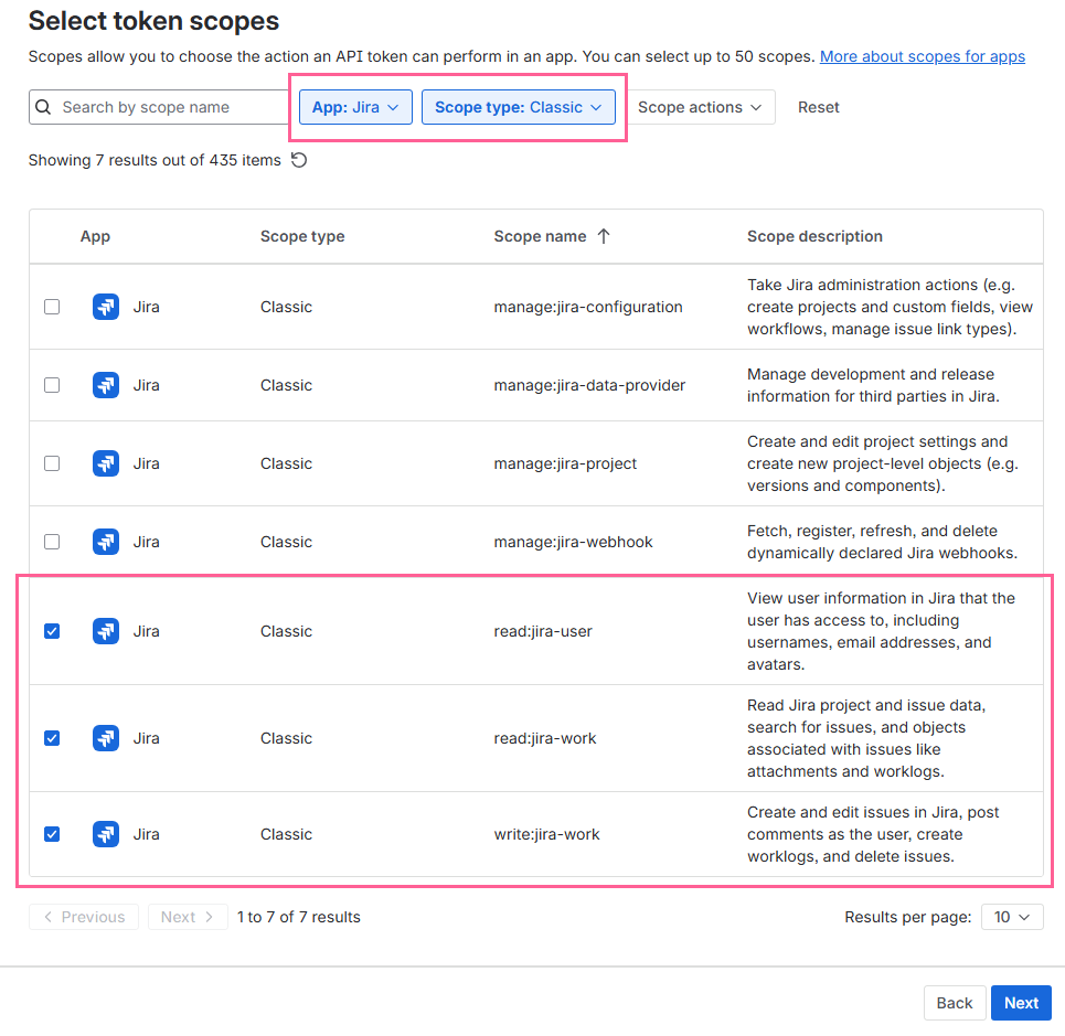 Under the App drop down list choose Jira and Scope type, choose Classic and click Next