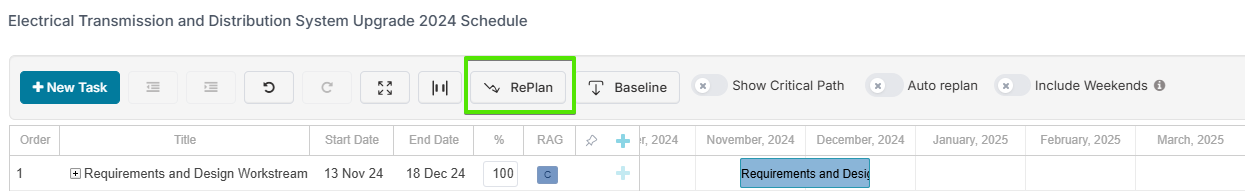 Baseline the Schedule: Before using the Replan function, baseline the schedule. This allows you to compare the new dates against the original plan, providing a clear view of any deviations and helping to maintain better control over the project timeline. For more information on baselining your project schedule, refer to this baseline article.