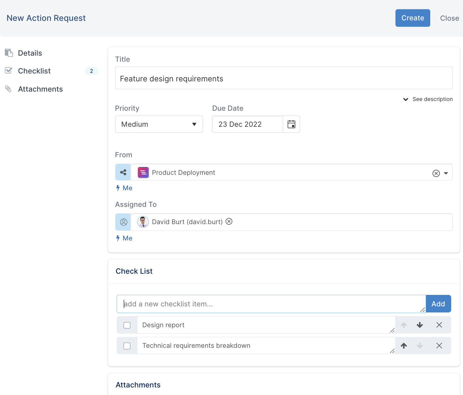 Simply begin with creating an initial action/task (example - using a new action request below).