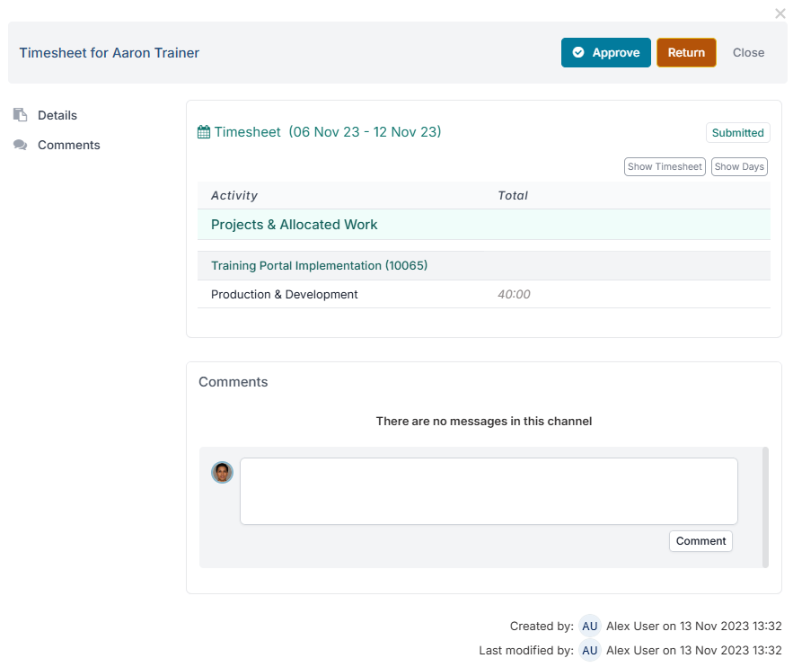 Project Managers approve time booked against their assigned projects (if project manager approval is enabled).