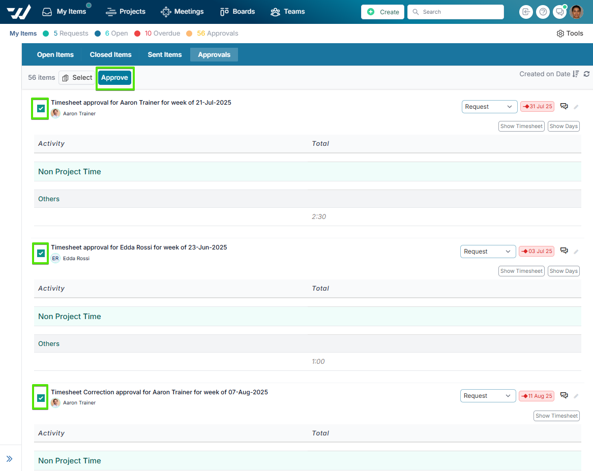 This feature is particularly useful for managers handling a high volume of timesheet approvals.