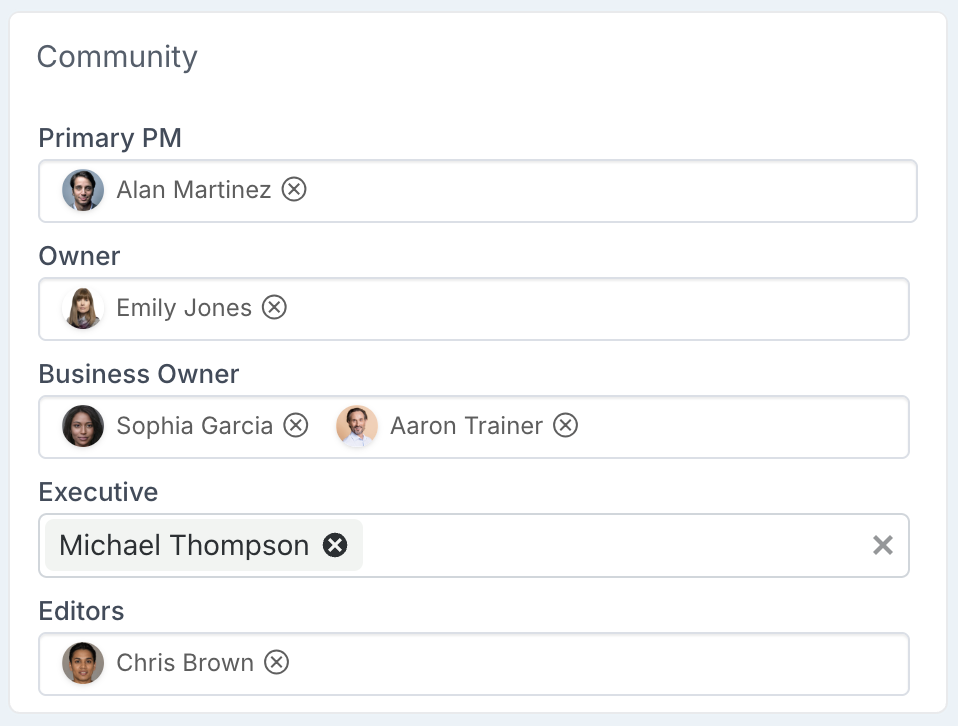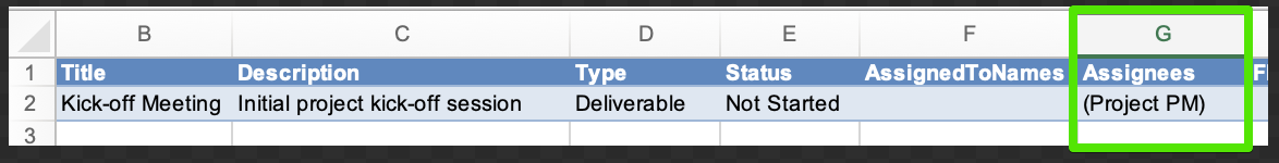 You can list both roles and named individuals in the Assignees column — e.g.(Primary PM), beth.
