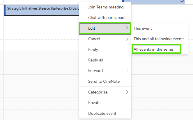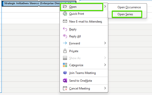 Open the meeting series in Outlook