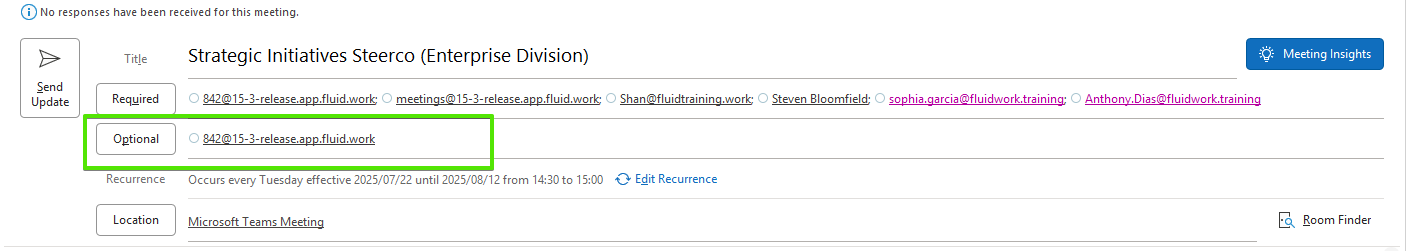 This allows Outlook to link the update to the correct meeting series in Fluid.
