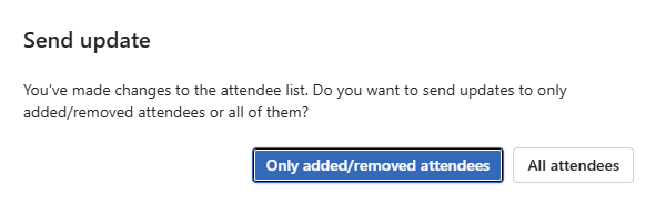 When updating a meeting series in Outlook, we generally recommend sending the update to all attendees to ensure everyone has the latest information and that the changes are updated in Fluid as well. However, if you only need to notify newly added or removed attendees, you can use Outlook’s “Send update to only added/removed attendees” option by following these steps: