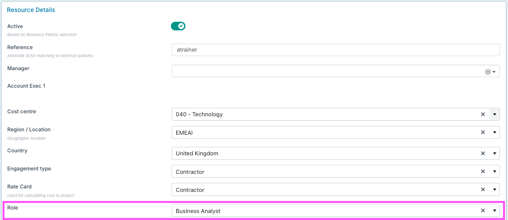 Scroll down to the 'Resource Details' section and add their role in the 'Role' field.