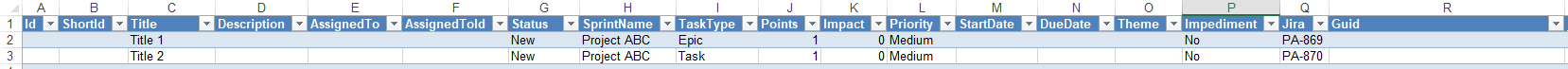 Open the downloaded Excel file. This file represents items on the Fluid Board and should look similar to below
