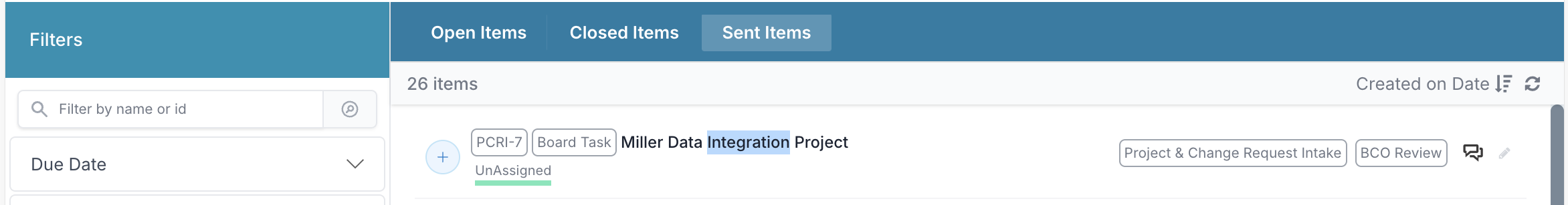 Once their account is created, users can track the progress of their tickets from the Track Sent Items view.