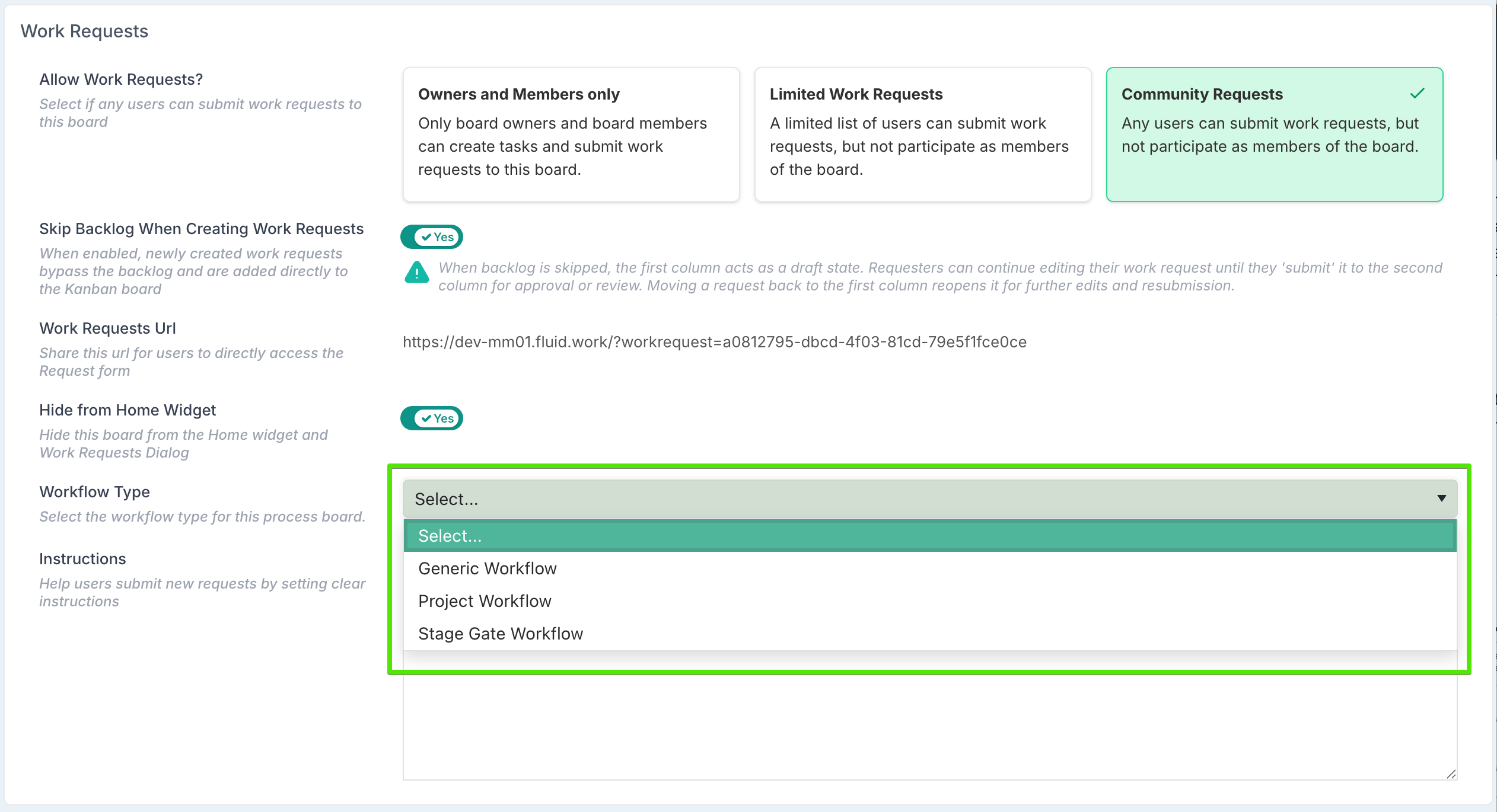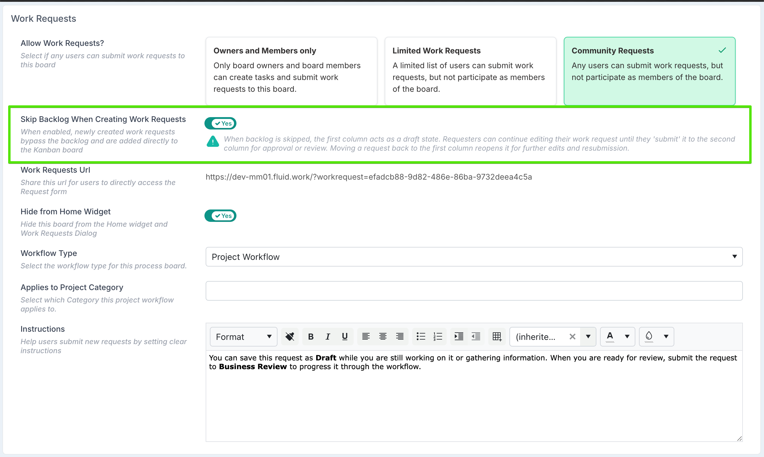 Community request boards can now be configured to bypass the backlog and send new requests straight into the workflow.