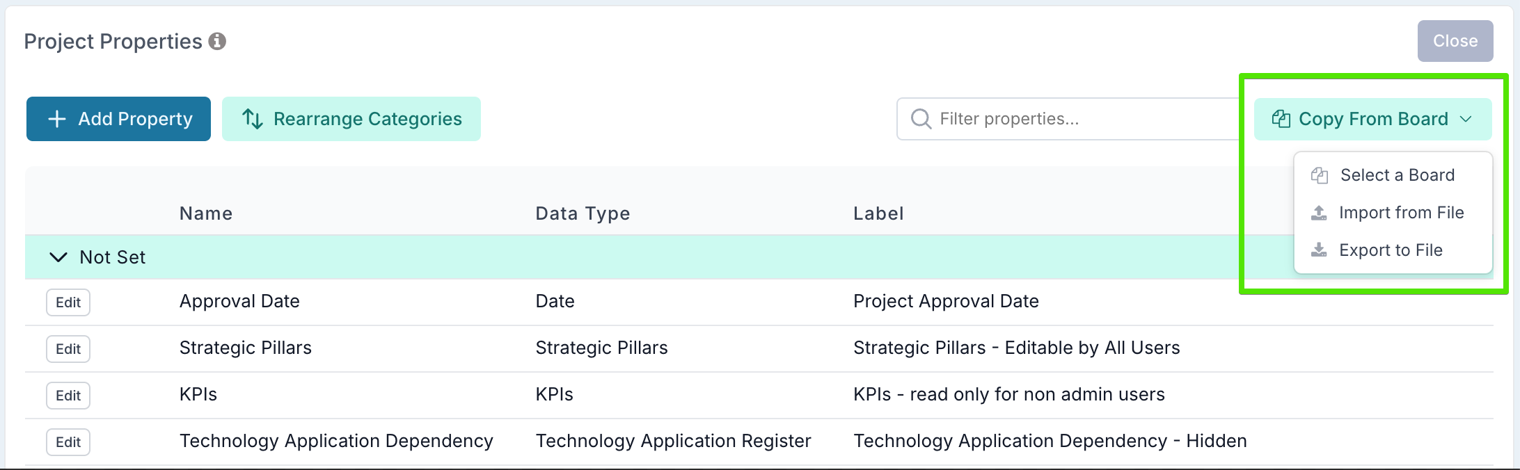6. Export, Import, and Copy Custom Properties Across Boards and Projects