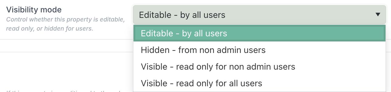 You can now define a visibility mode for each custom property, giving you precise control over who can see a property and who can edit it.