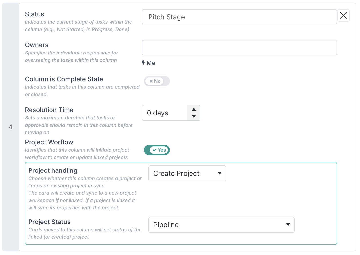 Project pipeline boards can define specific columns or statuses that trigger synchronisation between a card and a project. Until now, this was primarily used to create a new project: when a card moved into a configured column, Fluid would create the project and copy across any matching card properties into the new project record.