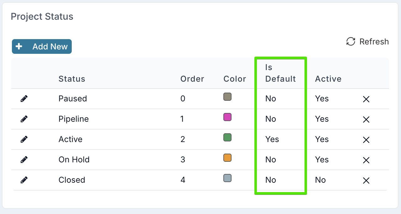 If the Closed status is configured as Active, the project is still considered active by the system.