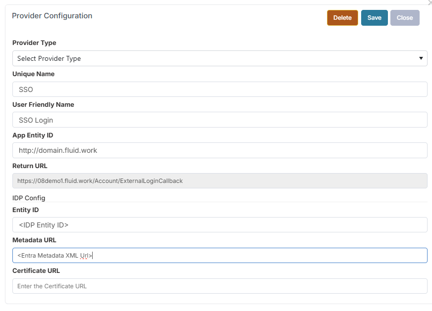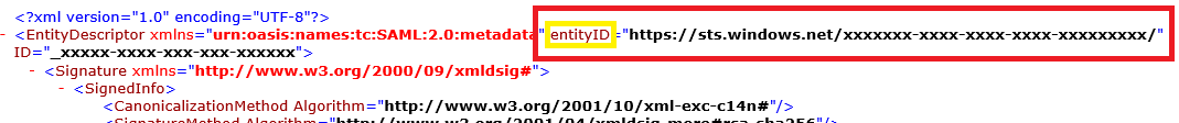 Open the URL in a browser and take note of the entityID, you will need this when configuring Fluid.